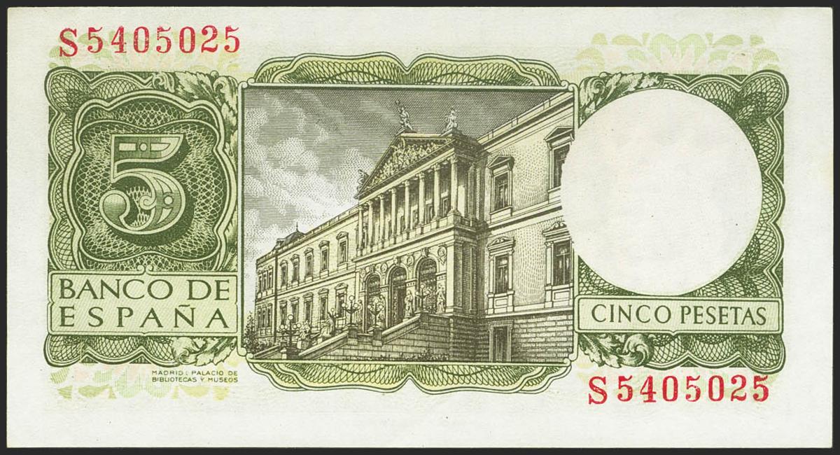5 Pesetas. 22 de Julio de 1954. Serie S. (Edifil 2021: 466a). Apresto original. SC-.