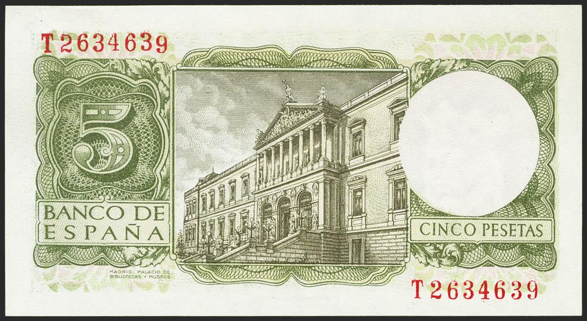 5 Pesetas. 22 de Julio de 1954. Serie T. (Edifil 2021: 466a). Apresto original. SC.