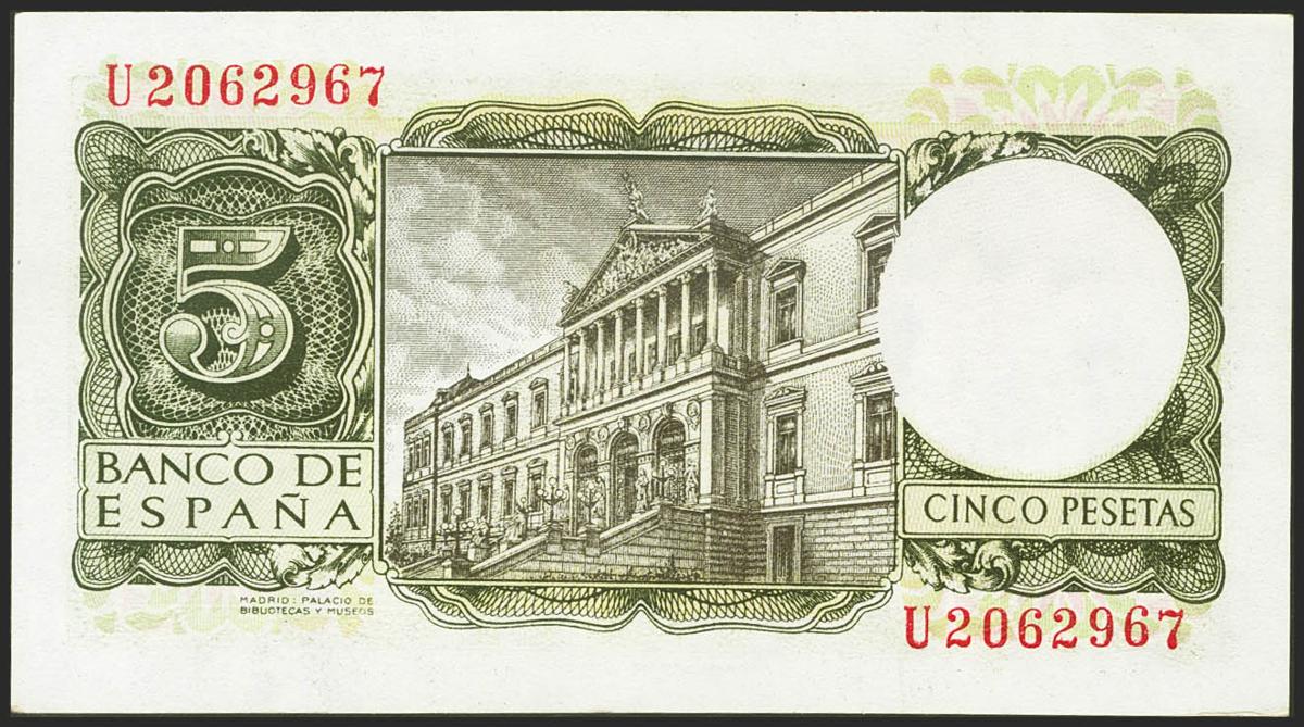 5 Pesetas. 22 de Julio de 1954. Serie U. (Edifil 2021: 466a). Apresto original. SC.