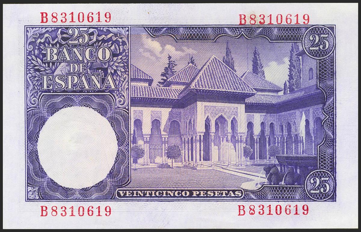 25 Pesetas. 22 de Julio de 1954. Serie B. (Edifil 2021: 467a). Conserva todo su apresto original. SC-.