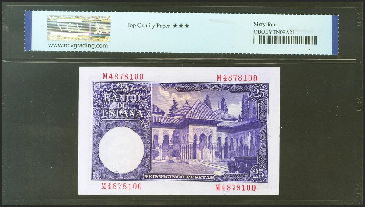 25 Pesetas. 22 de Julio de 1954. Serie M. (Edifil 2021: 467a, Pick: 147a). Apresto original. SC. Encapsulado NCV64TQP.