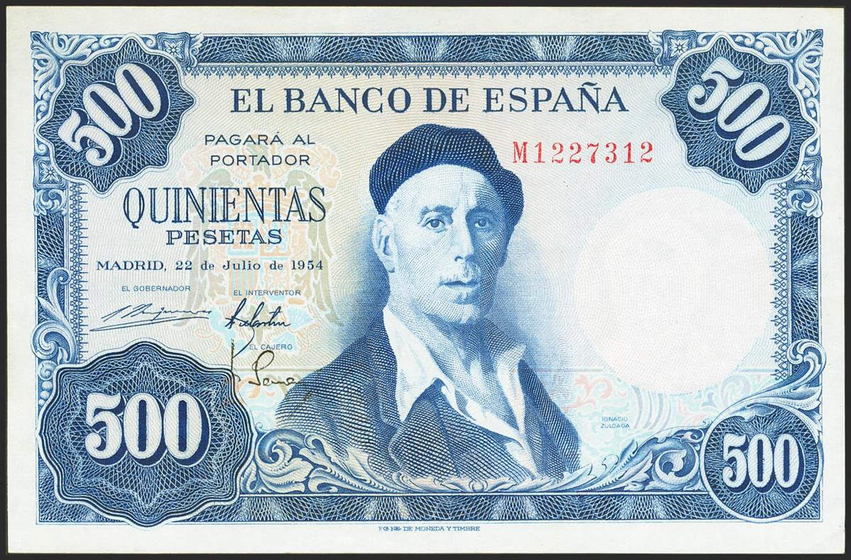 500 Pesetas. 22 de Julio de 1954. Serie M. (Edifil 2021: 468b). Conserva todo su apresto original. SC-.