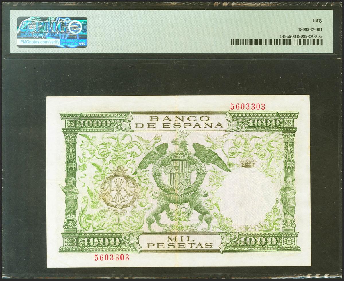 1000 Pesetas. 22 de Noviembre de 1957. Sin serie. (Edifil 2021: 469, Pick: 149a). Inusual. EBC. Encapsulado PMG50.