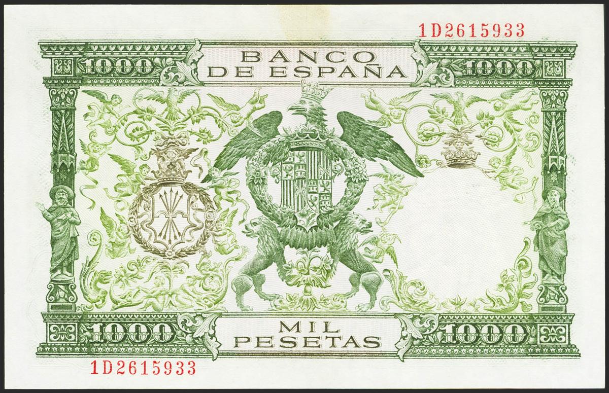 1000 Pesetas. 29 de Noviembre de 1957. Serie 1D. (Edifil 2021: 469b). Conserva gran parte de su apresto original. EBC+.