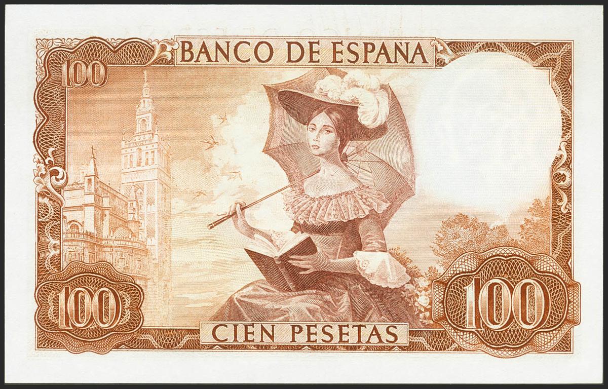 100 Pesetas. 19 de Noviembre de 1965. Serie A. (Edifil 2021: 470a). Conserva todo su apresto original. SC.