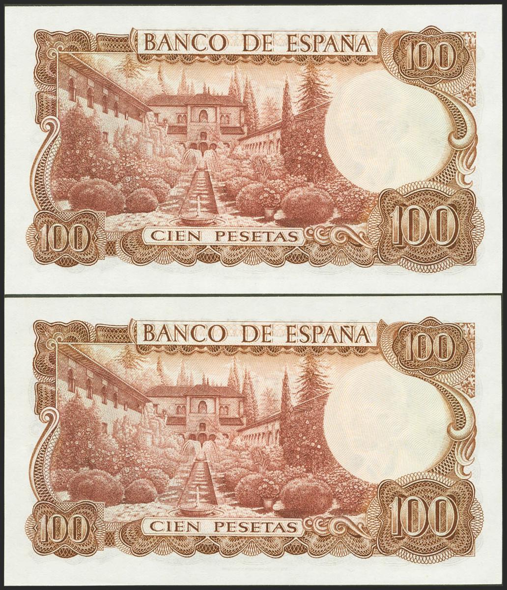 100 Pesetas. 17 de Noviembre de 1970. Pareja correlativa. Serie 9A, numeración especial. (Edifil 2017: 472d). SC.