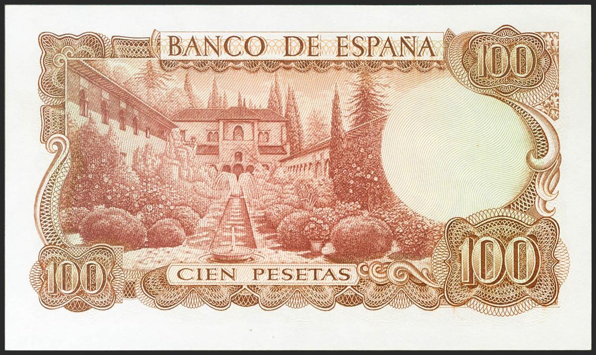 100 Pesetas. 17 de Noviembre de 1970. Sin serie y numeración bajísima. (Edifil 2021: 472). Conserva todo su apresto original. SC.