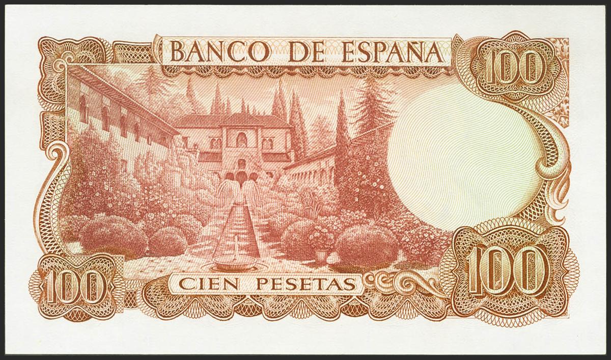 100 Pesetas. 17 de Noviembre de 1970. Sin serie, con numeración baja. (Edifil 2021: 472). Conserva parte de su apresto original. EBC+++.