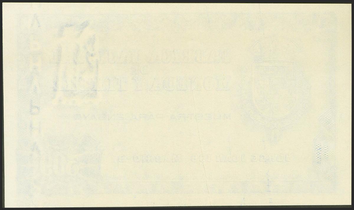 (1970ca). "Muestra para Ensayo", con el número 509, realizado en la FNMT, solamente el anverso y en color azul. Muy raro. EBC+.