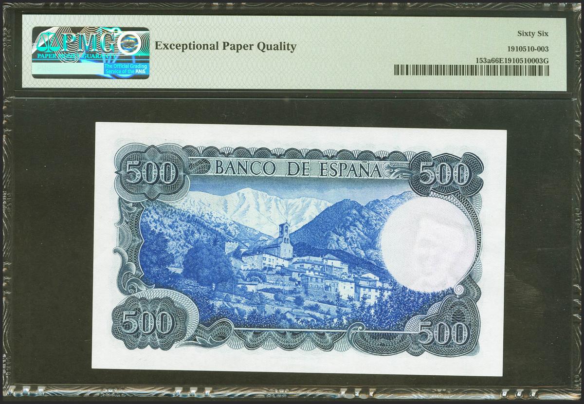 500 Pesetas. 23 de Julio de 1971. Serie 1R, última serie emitida. (Edifil 2021: 473a, Pick: 153a). Raro en esta excepcional calidad, apresto original. SC. PMG66EPQ.