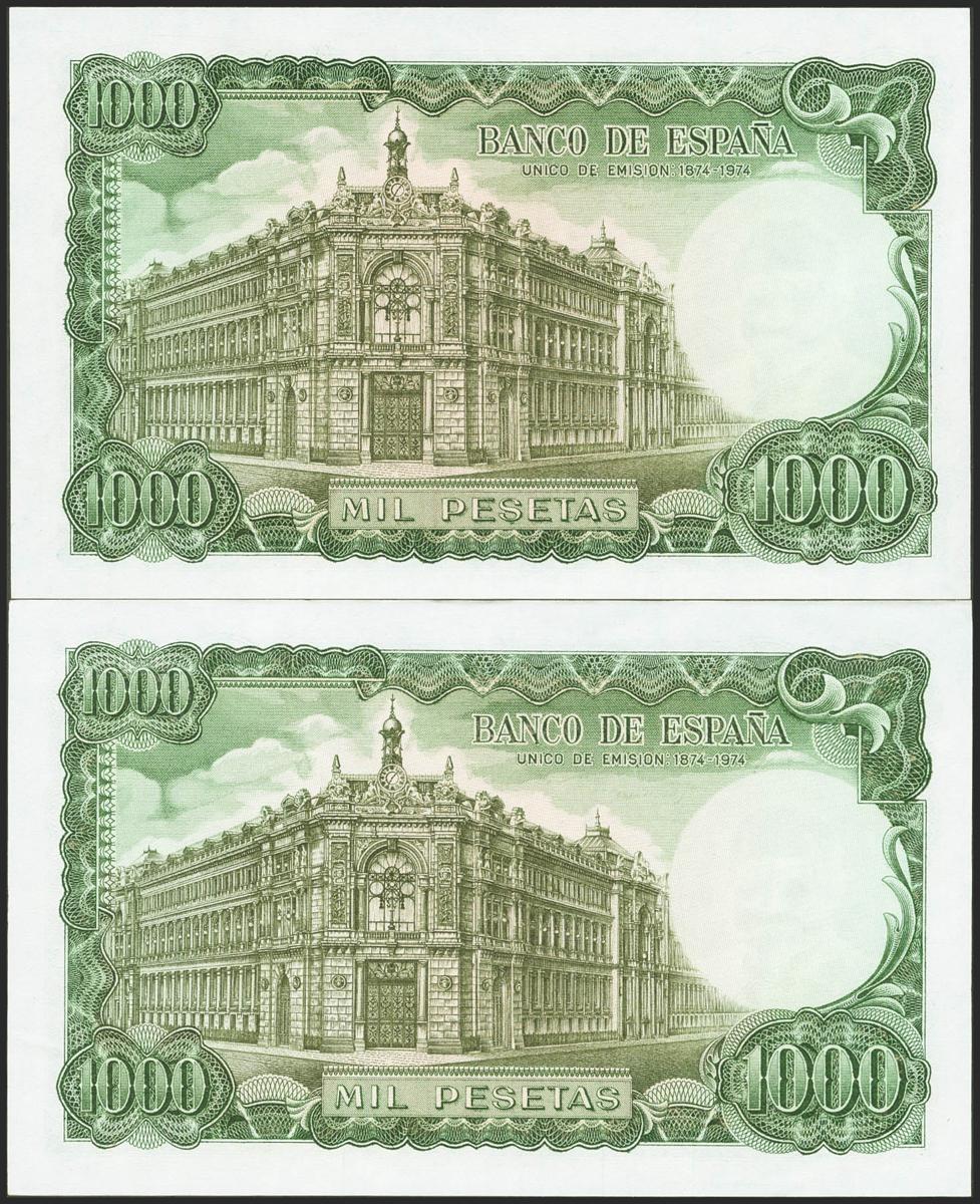 1000 Pesetas. 17 de Septiembre de 1971. Pareja correlativa. Sin serie. (Edifil 2021: 474). Conserva todo su apresto original. SC-.