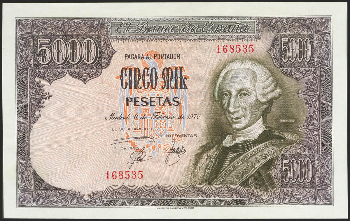 5000 Pesetas. 6 de Febrero de 1976. Sin serie. (Edifil 2017: 475). Apresto original. SC.