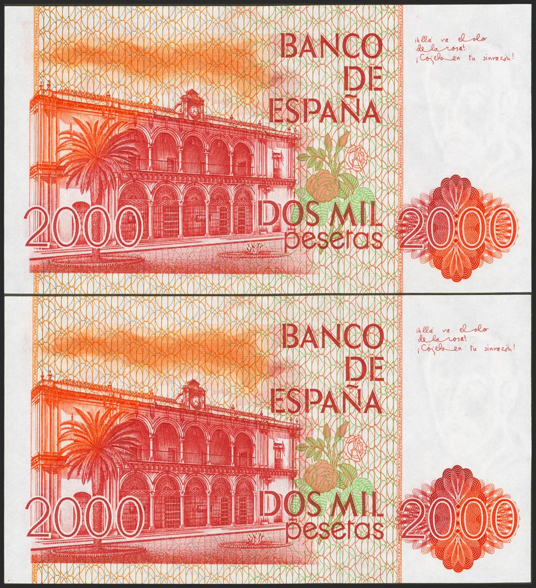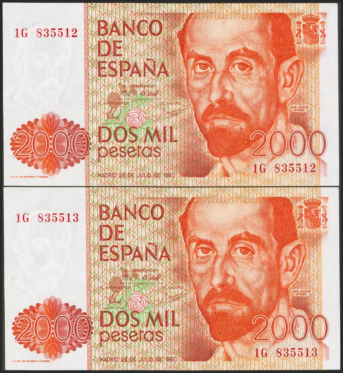 2000 Pesetas. 22 de Julio de 1980. Pareja correlativa. Serie 1G. (Edifil 2017: 479a). SC.