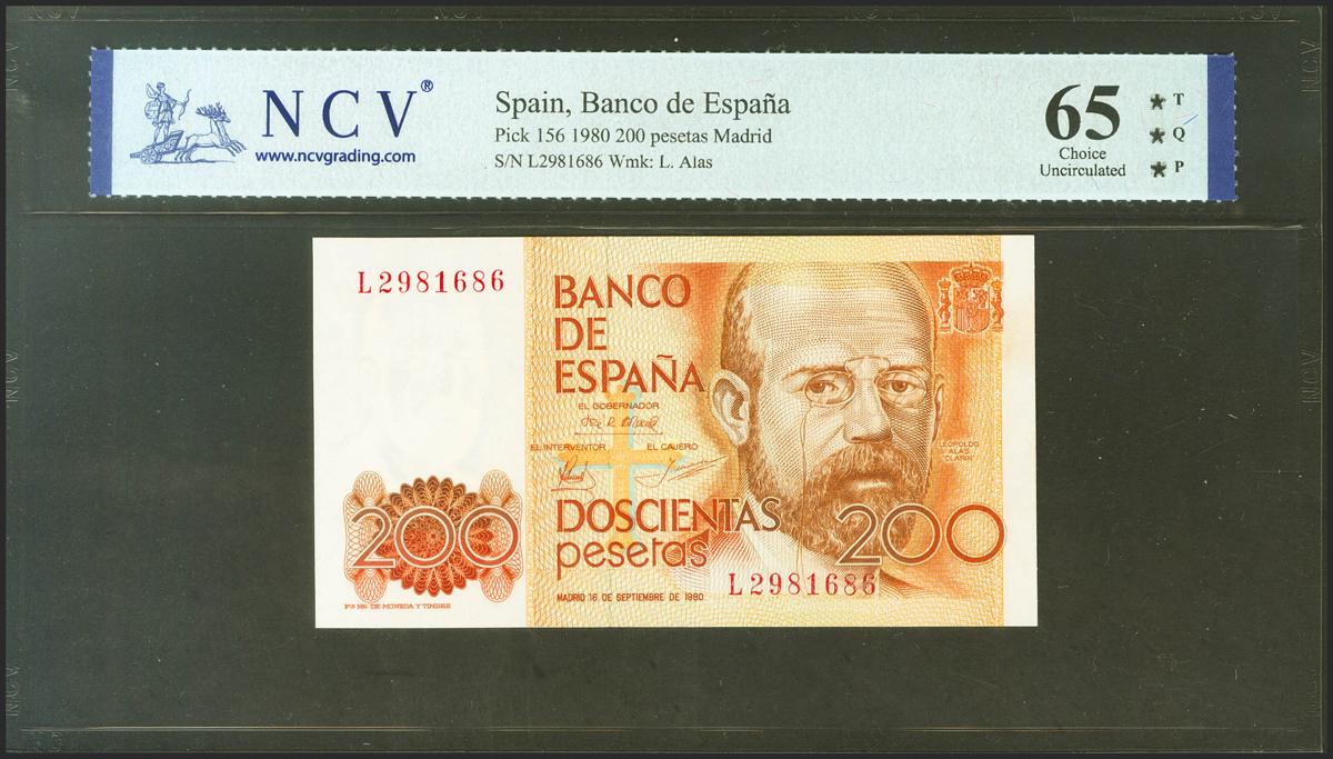 200 Pesetas. 16 de Septiembre de 1980. Serie L. (Edifil 2021: 480a, Pick: 156). SC. Encapsulado NCV65TQP.