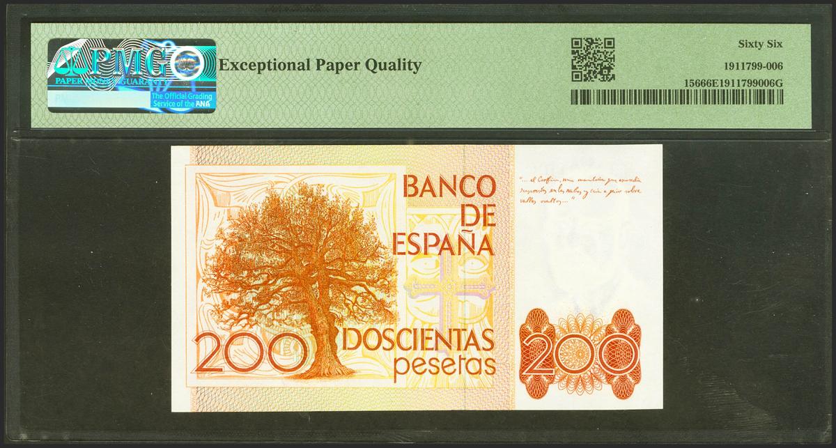 200 Pesetas. 16 de Septiembre de 1980. Serie M, última serie emitida. (Edifil 2021: 480a). SC. Encapsulado PMG66EPQ.