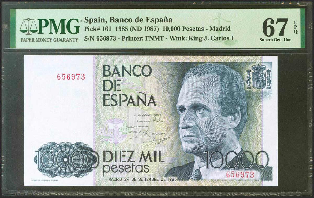 10000 Pesetas. 24 de Septiembre de 1985. Sin serie. (Edifil 2021: 481, Pick: 161). Muy raro en esta excepcional calidad. SC. Encapsulado PMG67EPQ.
