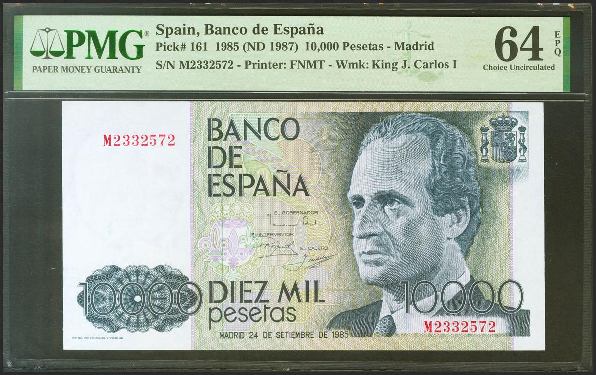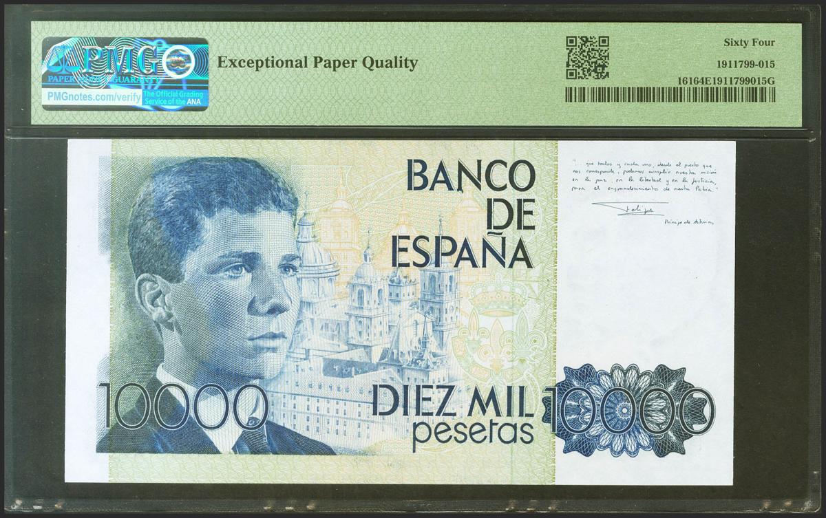 10000 Pesetas. 24 de Septiembre de 1985. Serie M. (Edifil 2021: 481a, Pick: 161). Apresto original. SC. Encapsulado PMG64EPQ.