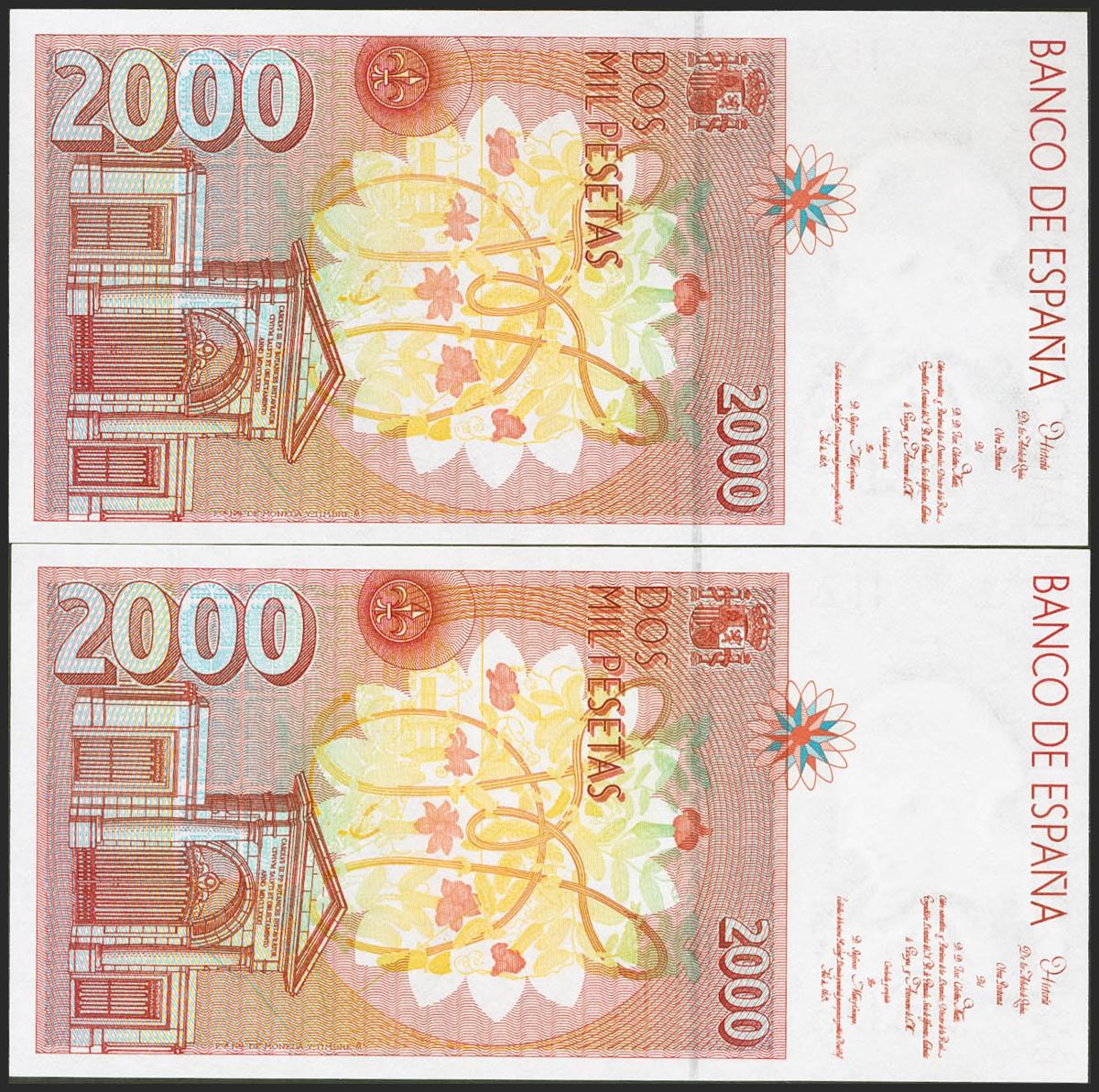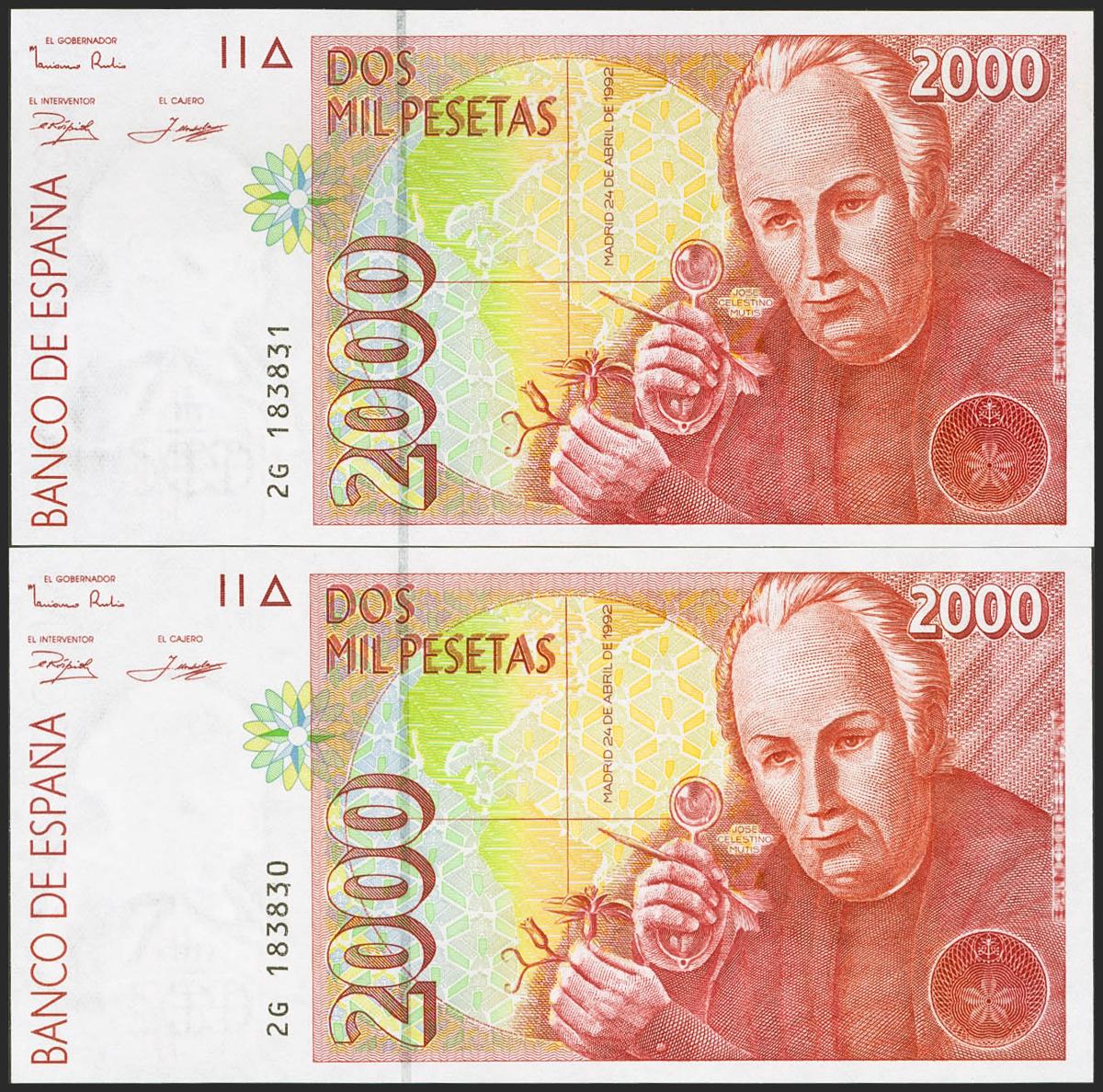 2000 Pesetas. 24 de Abril de 1992. Pareja correlativa. Serie 2G. (Edifil 2021: 482Aa). EBC+++.