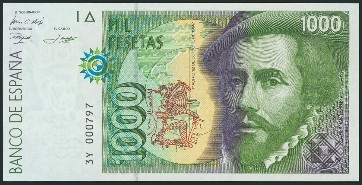 1000 Pesetas. 12 de Octubre de 1992. Tipo II. Serie 3Y y numeración baja y capicúa. (Edifil 2017: 483b). SC.