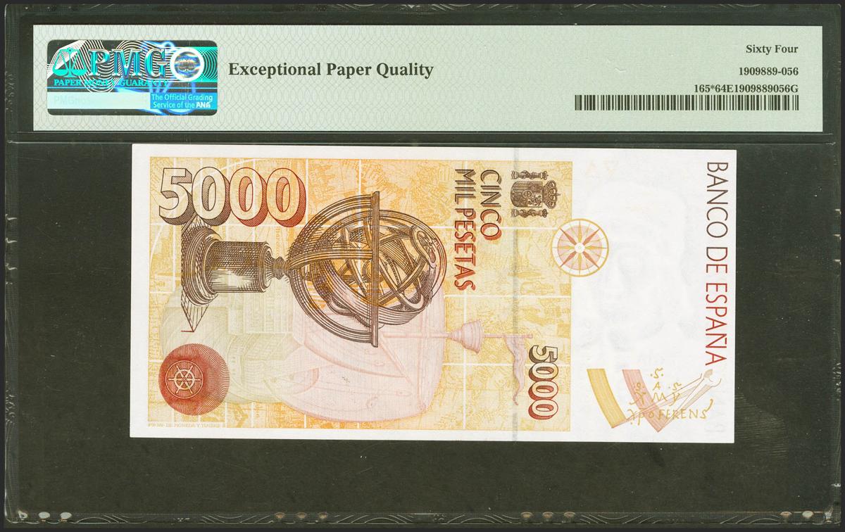5000 Pesetas. 12 de Octubre de 1992. Serie especial 9B. (Edifil 2021: 484b, Pick: 165*). SC. Encapsulado PMG64EPQ.