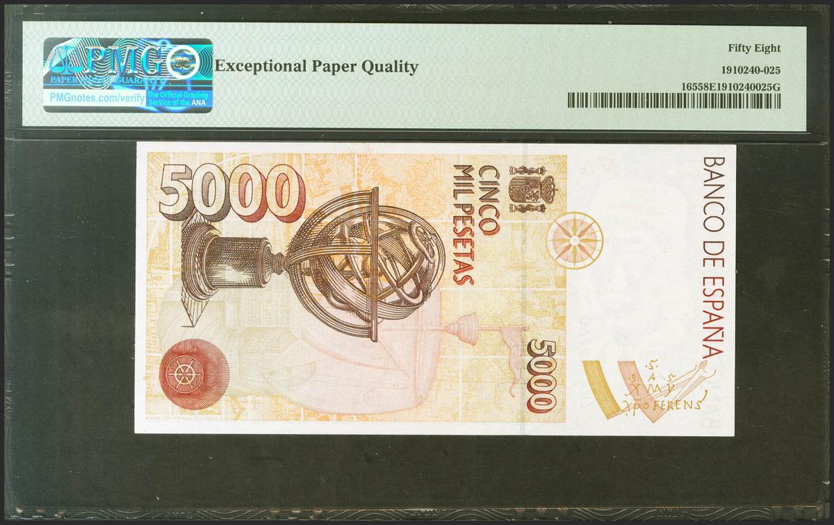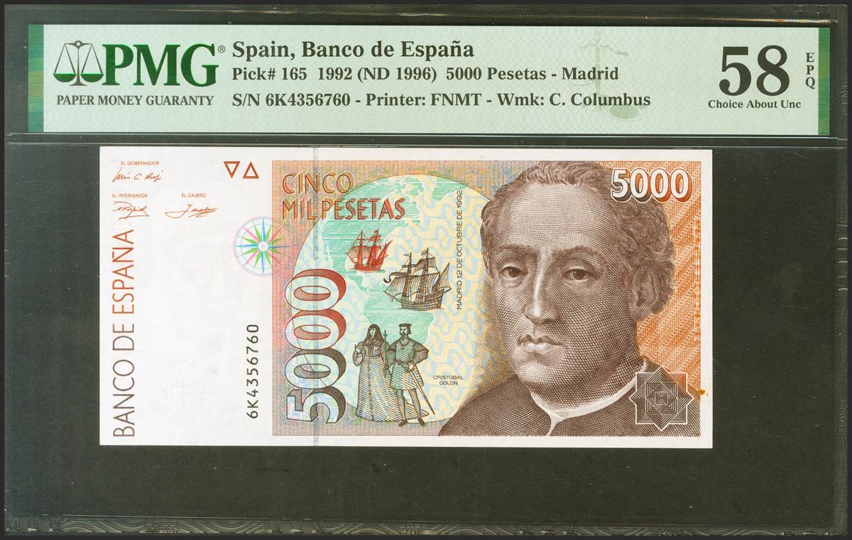 5000 Pesetas. 12 de Octubre de 1992. Serie 6K, última serie emitida. (Edifil 2017: 484a, Pick: 165). EBC+++. Encapsulado PMG58EPQ.