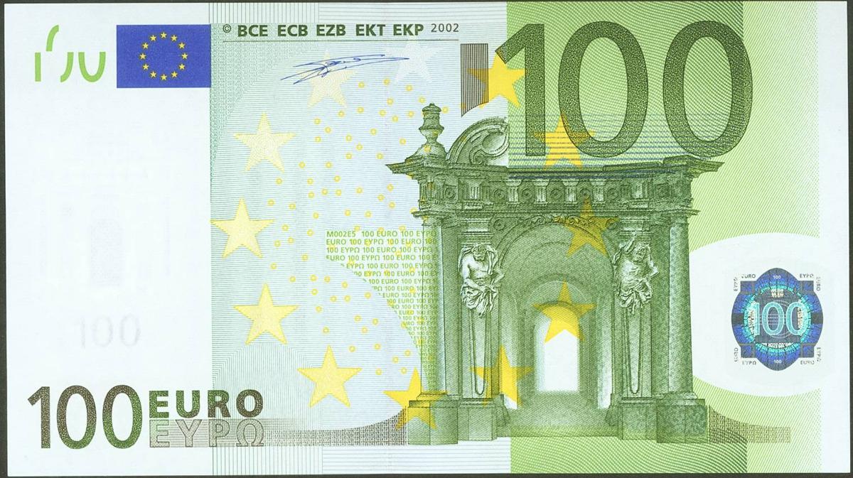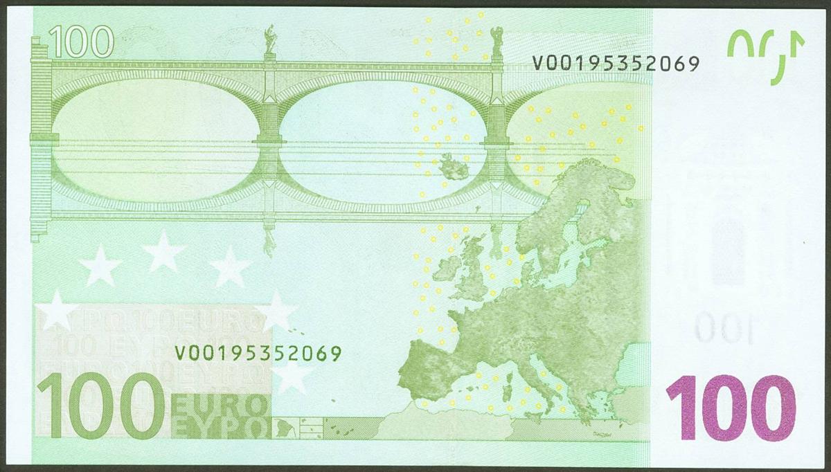 100 Euros. 1 de Enero de 2002. Firma Duisenberg. Serie V (España). (Edifil 2021: 490). SC.