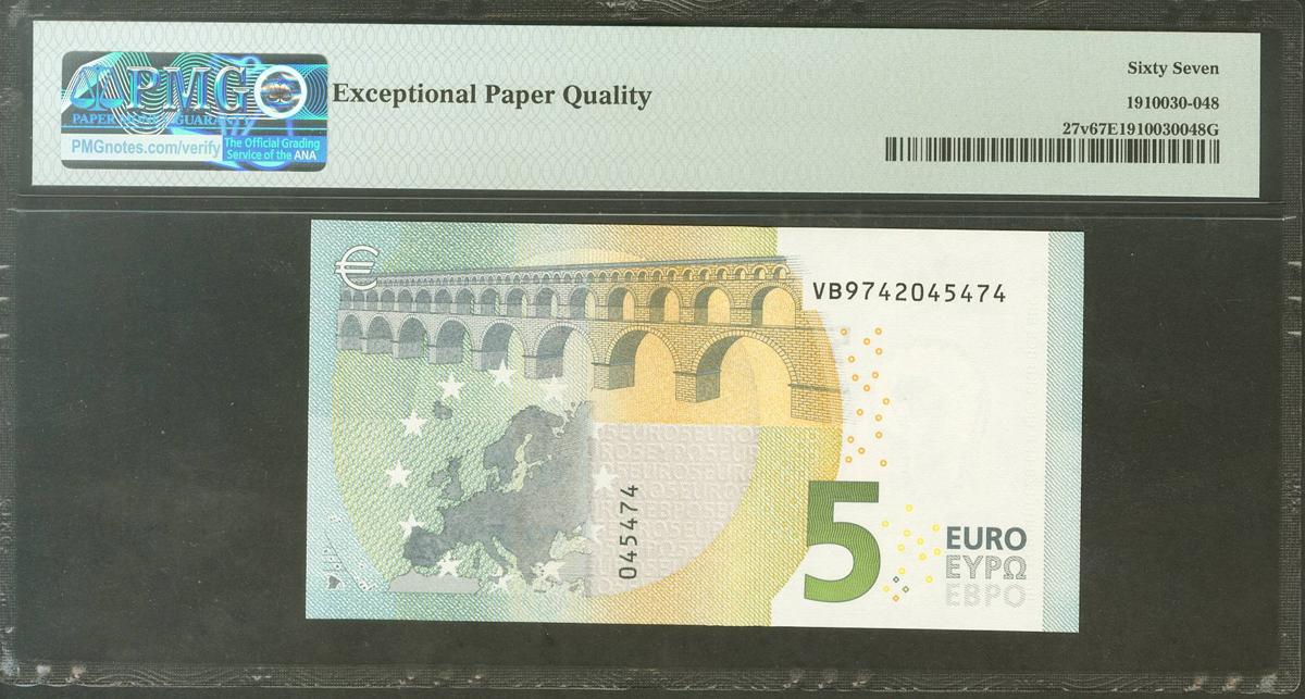 5 Euros. 2 de Mayo de 2013. Firma Lagarde. Serie V (España). (Edifil 2021: 493A, Pick: 27v). SC. Encapsulado PMG67EPQ.