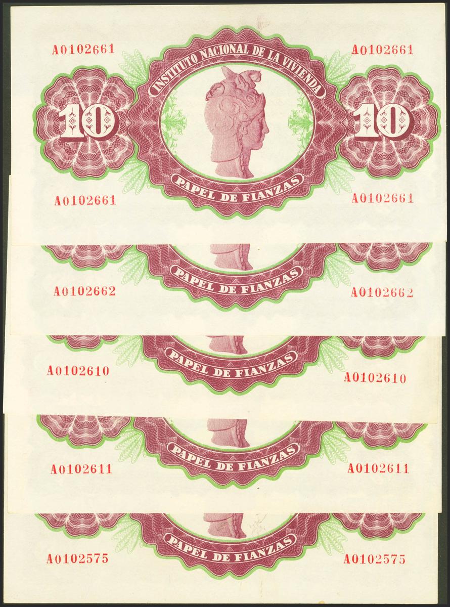 Conjunto de 5 billetes de 10 Pesetas de Papel de Finanzas emitidos el 1 de Enero de 1940, todos ellos con la serie A. SC-/SC--.