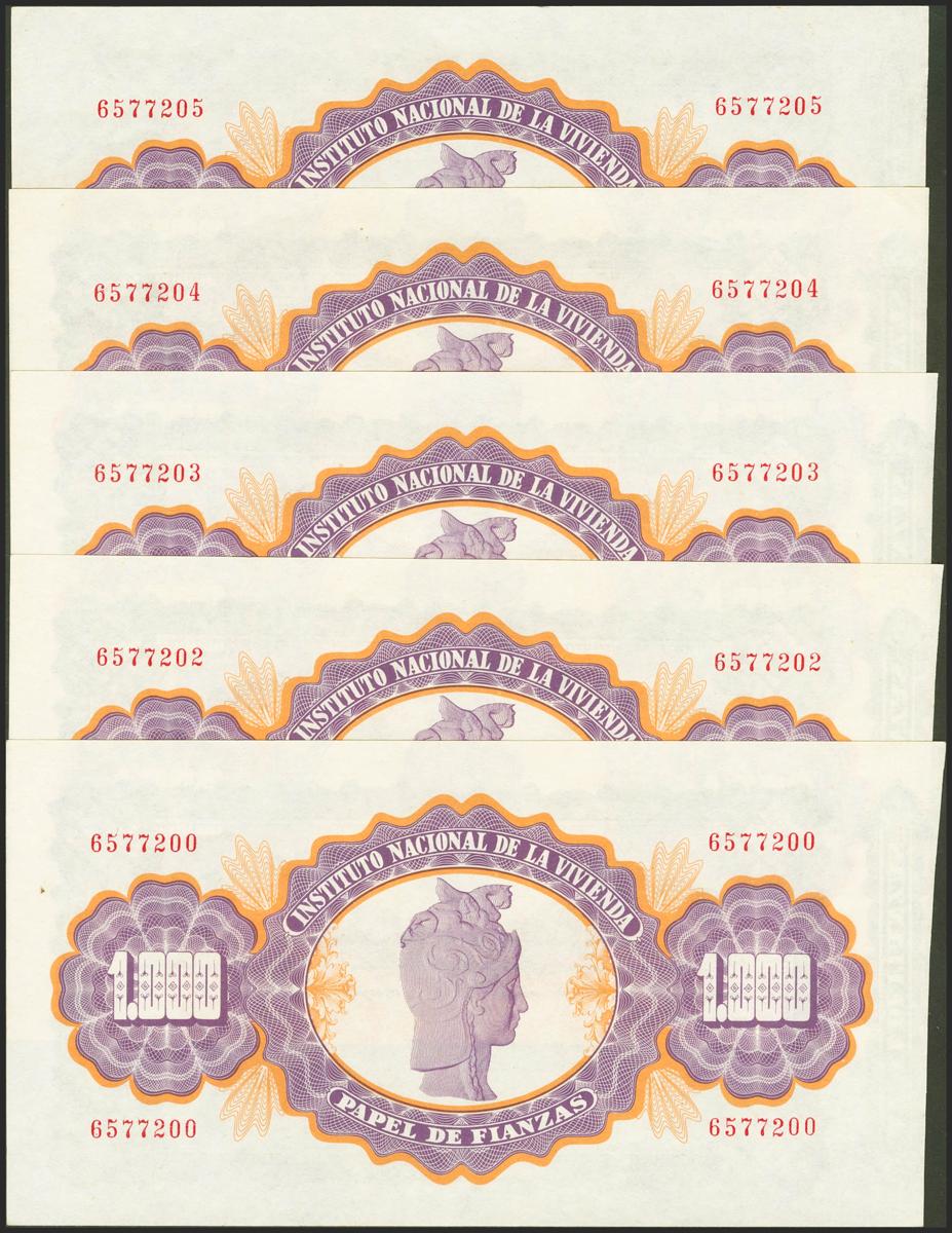Conjunto de 5 billetes de 1000 Pesetas de Papel de Finanzas emitidos el 1 de Noviembre de 1977, todos ellos sin serie. SC-.