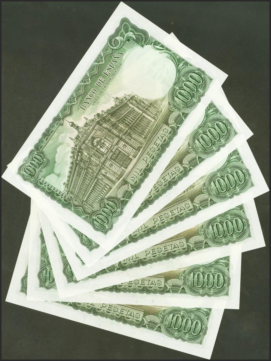 Conjunto de dos tríos de 1000 Pesetas emitidos el 17 de Septiembre de 1971, con las series 3F y 5M, respectivamente (Edifil 2021: 474c), apresto original. SC/SC-.