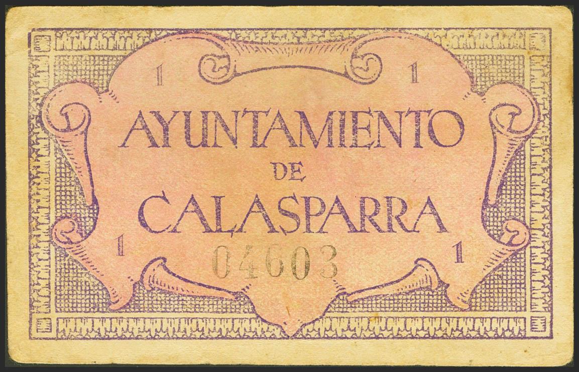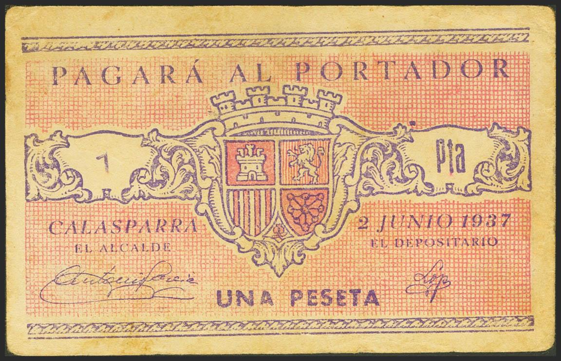 CALASPARRA (MURCIA). 1 Peseta. 2 de Junio de 1937. (González: 1405). Raro. MBC+.