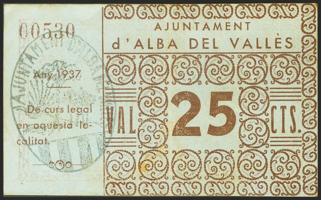 ALBA DEL VALLES (BARCELONA). 25 Céntimos. 1937. (González: 6086). Raro. EBC-.