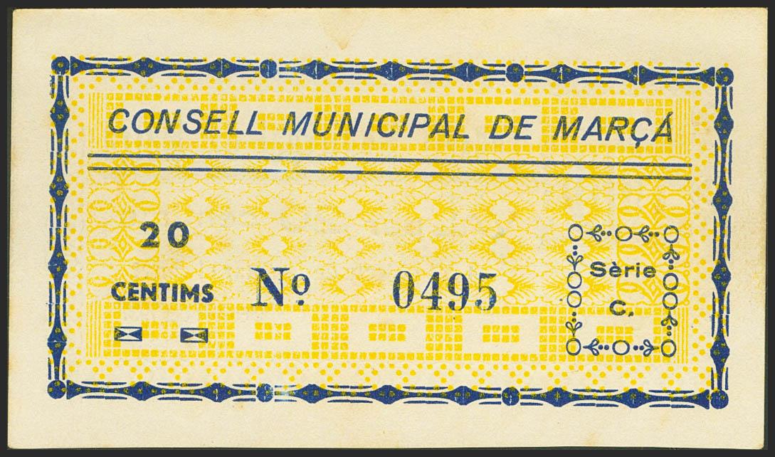 MARCA (TARRAGONA). 20 Céntimos. Octubre 1937. Serie C. (González: 8558). SC.