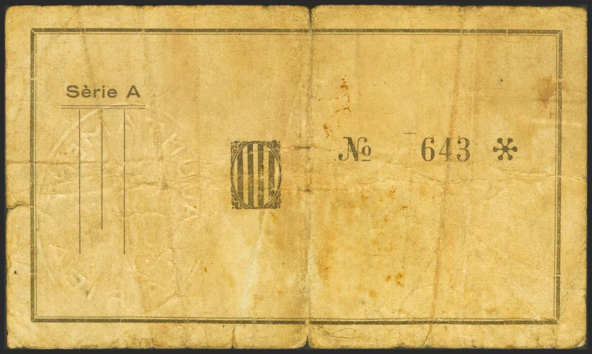RIBA (TARRAGONA). 1 Peseta. Febrero 1937. Serie A. (González: 9599). Muy raro. BC+.