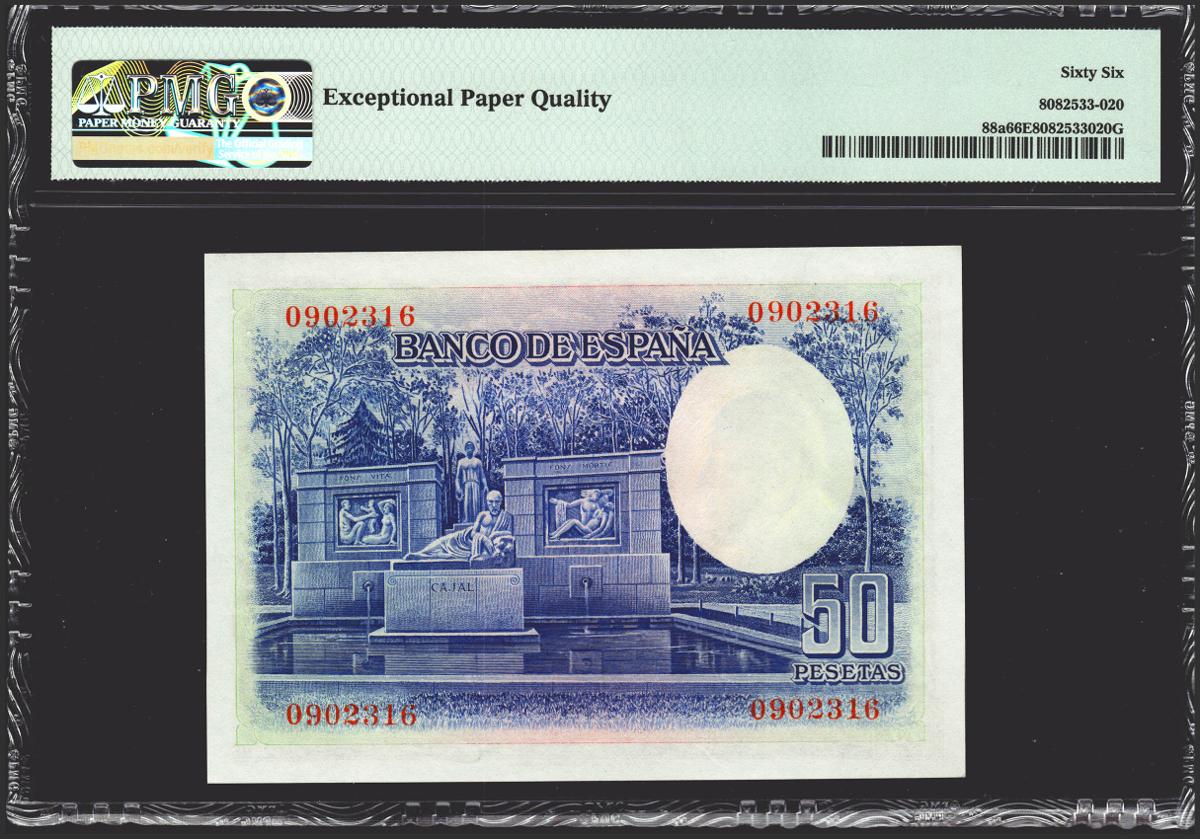 50 Pesetas. 22 de Julio de 1935. Sin serie. (Edifil 2021: 366, Pick: 88a). Raro en esta excepcional calidad, apresto original. SC. Encapsulado PMG66EPQ.