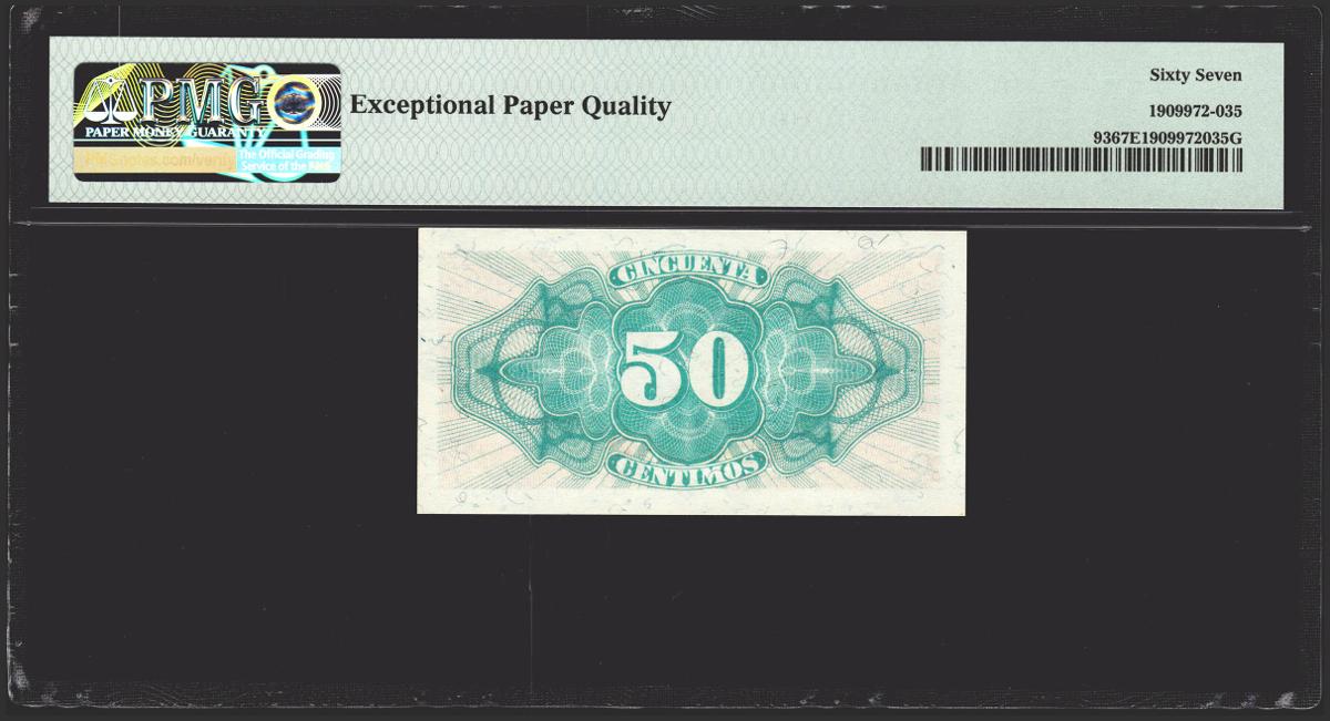50 Céntimos. 1937. Ministerio de Hacienda. Serie C, última serie emitida. (Edifil 2021: 391a, Pick: 93). Raro en esta excepcional conservación, apresto original. SC. Encapsulado PMG67EPQ.