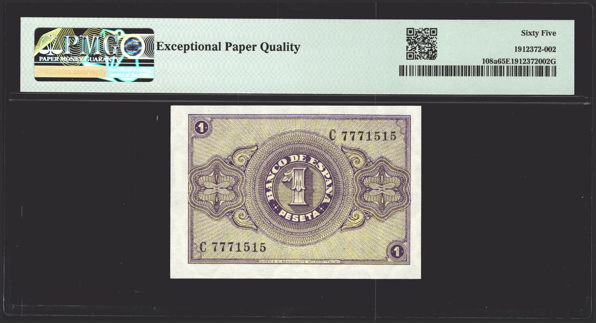 1 Peseta. 30 de Abril de 1938. Serie C. (Edifil 2021: 428a, Pick: 108a). Apresto original. SC. Encapsulado PMG65EPQ.
