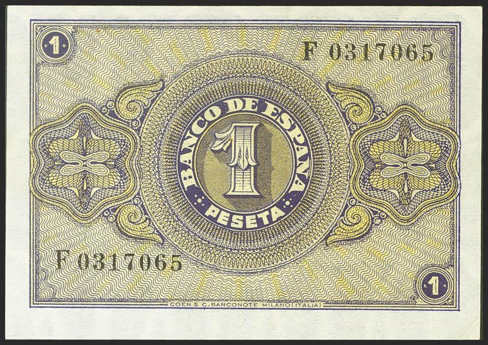 1 Peseta. 30 de Abril de 1938. Serie F. (Edifil 2021: 428a). Apresto original. SC-.