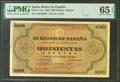 500 Pesetas. 20 de Mayo de 1938. Serie A. (Edifil 2021: 433, Pick: 114a). Raro en esta excepcional calidad, apresto original. SC. Encapsulado PMG65EPQ.