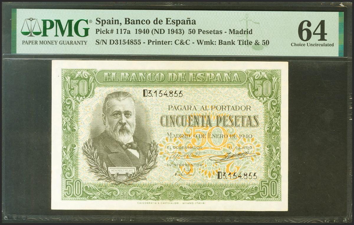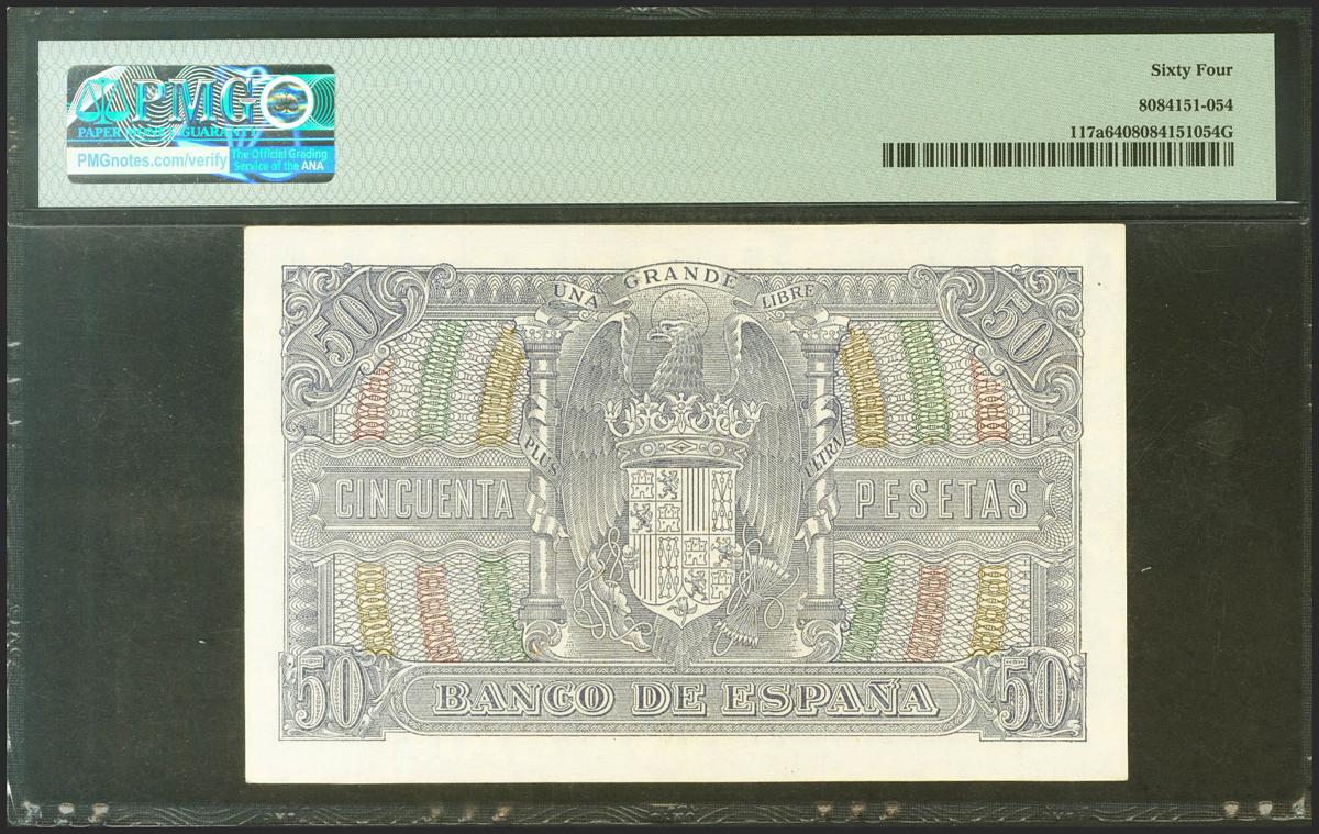 50 Pesetas. 9 de Enero de 1940. Serie D. (Edifil 2021: 437a, Pick: 117a). Inusual en esta calidad. SC. Encapsulado PMG64.