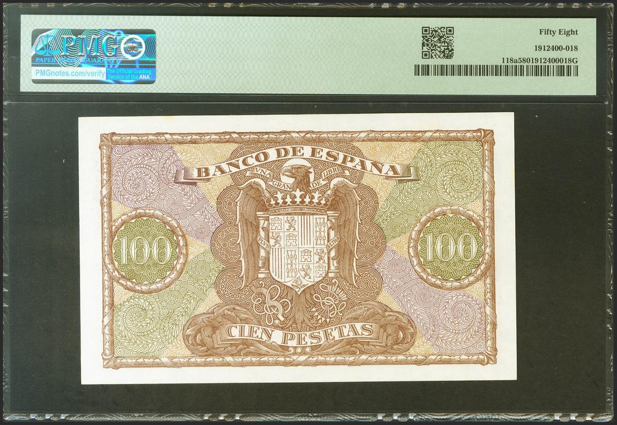 100 Pesetas. 9 de Enero de 1940. Serie A. (Edifil 2021: 438, Pick: 118a). EBC++. Encapsulado PMG58.