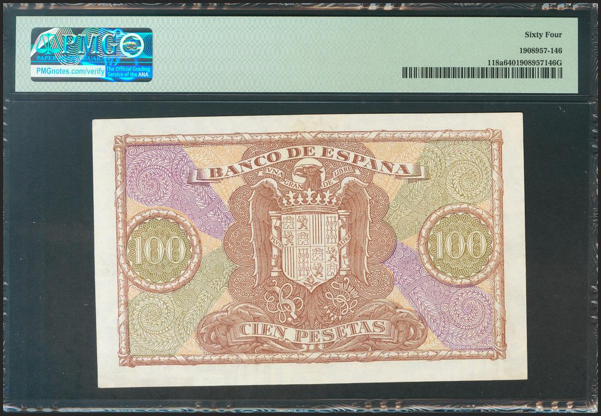 100 Pesetas. 9 de Enero de 1940. Serie E. (Edifil 2021: 438a, Pick: 118a). Inusual en esta calidad. SC. Encapsulado PMG64.