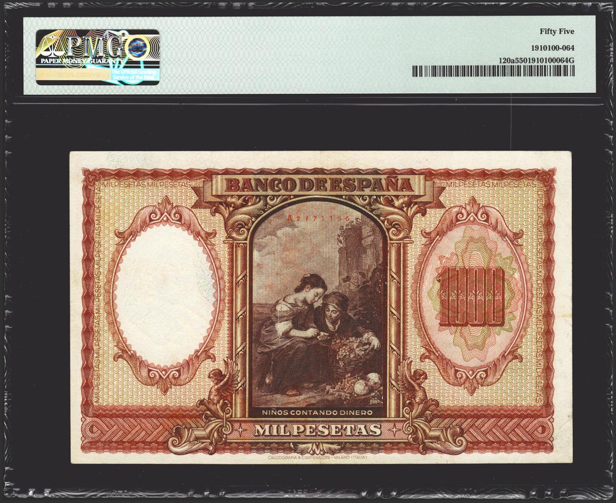 1000 Pesetas. 9 de Enero de 1940. Serie A. (Edifil 2021: 440, Pick: 120a). Raro en esta calidad. EBC+. Encapsulado PMG55.