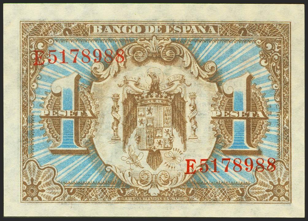 1 Peseta. 1 de Junio de 1940. Serie E. (Edifil 2021: 441a). Conserva todo el apresto original. SC.