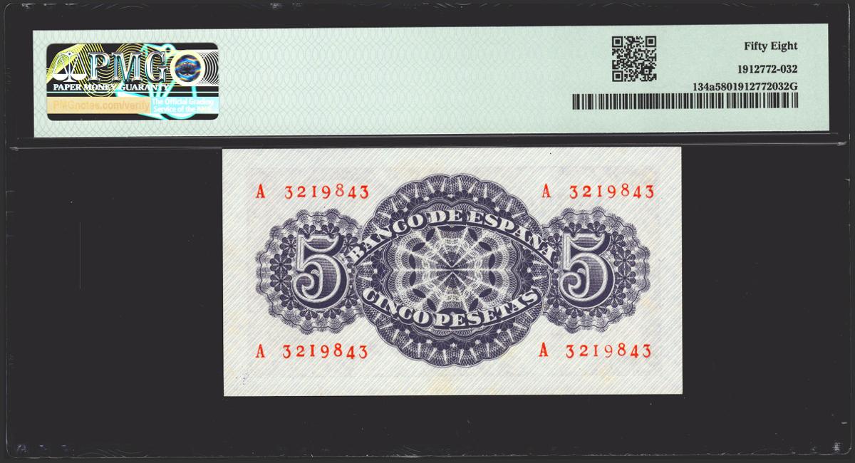 5 Pesetas. 12 de Abril de 1947. Serie A. (Edifil 2021: 454a, Pick: 134a). EBC++. Encapsulado PMG58.