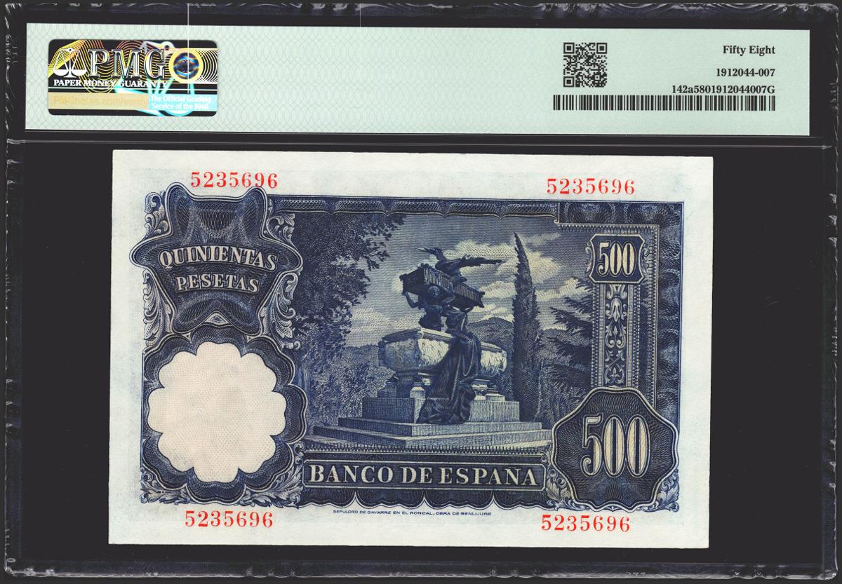 500 Pesetas. 15 de Noviembre de 1951. Sin serie. (Edifil 2021: 460, Pick: 142a). EBC++. Encapsulado PMG58.