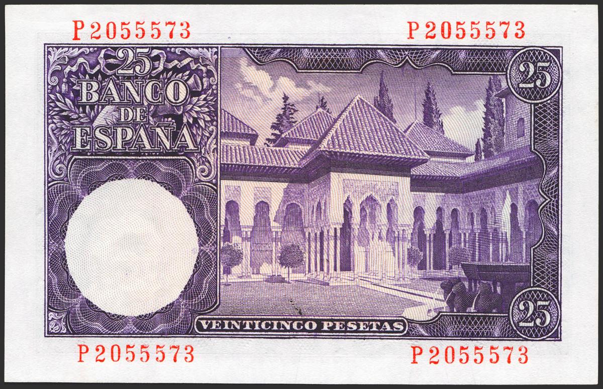 25 Pesetas. 22 de Julio de 1954. Serie P, última serie emitida. (Edifil 2021: 467b). Muy rara serie, especialmente en esta conservación y con todo su apresto original. SC-.