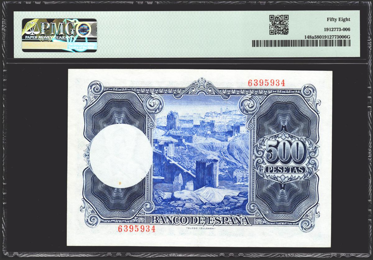 500 Pesetas. 22 de Julio de 1954. Sin serie. (Edifil 2021 468, Pick: 148a). EBC++. Encapsulado PMG58.
