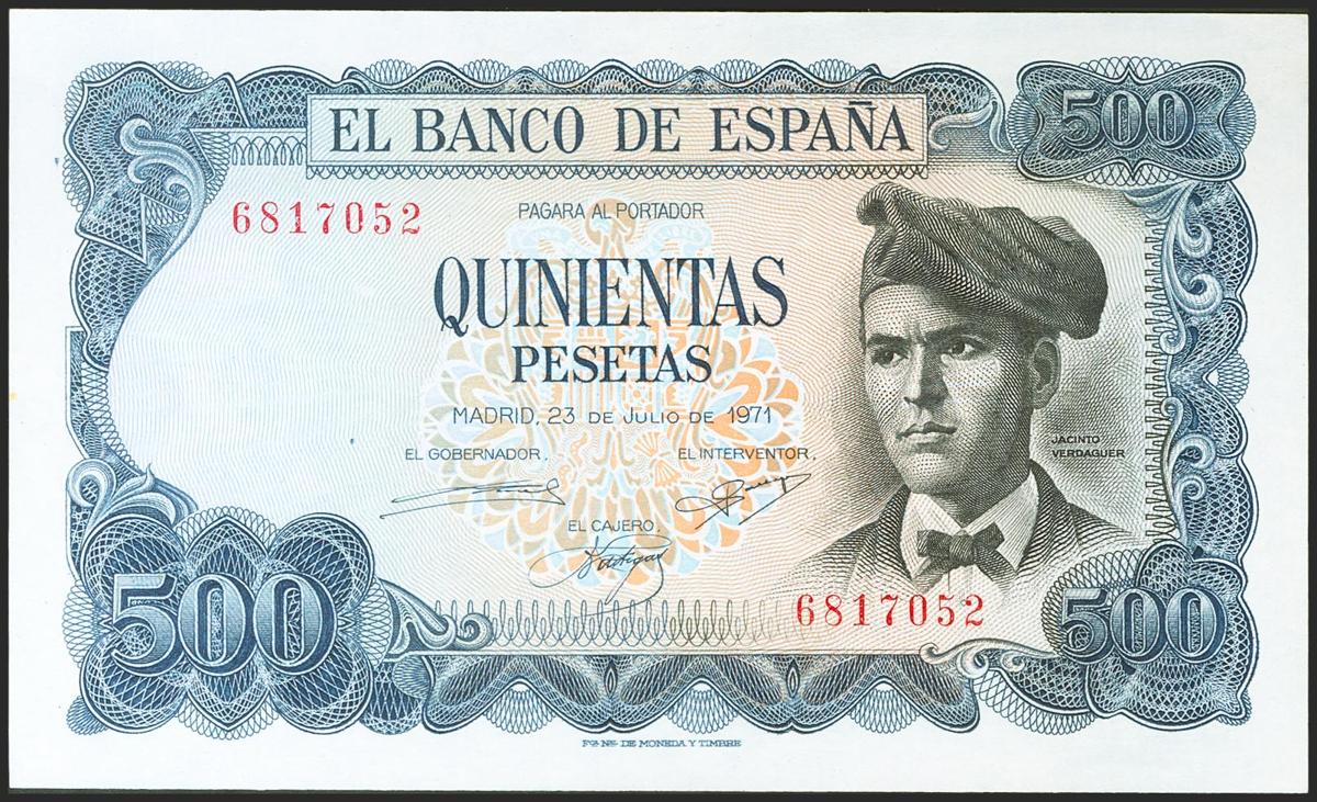 500 Pesetas. 23 de Julio de 1971. Sin serie. (Edifil 2021: 473). Conserva todo su apresto original. SC.