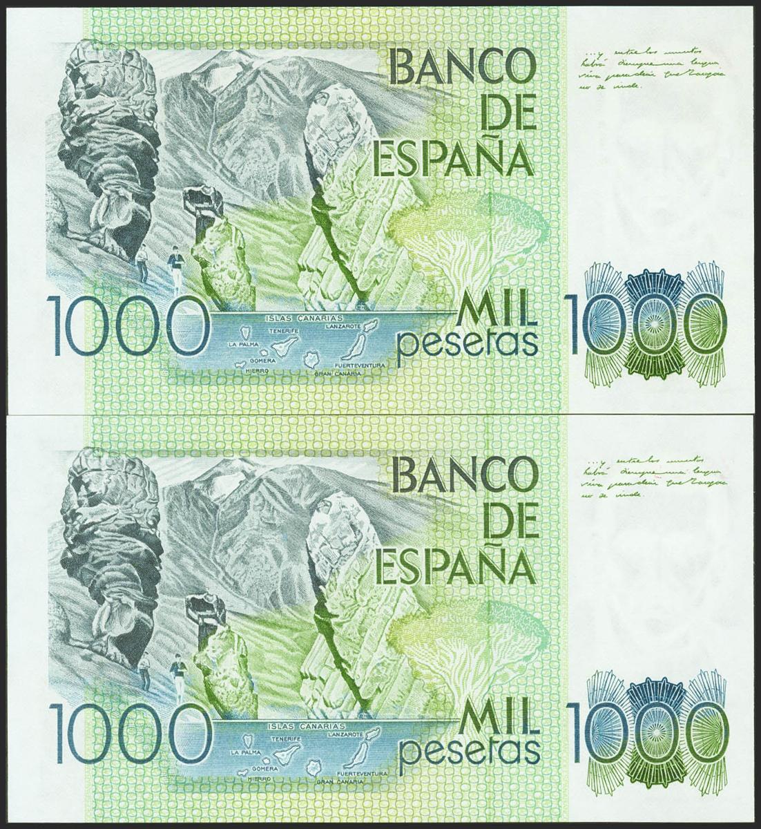 1000 Pesetas. 23 de Octubre de 1979. Pareja correlativa. Serie Z-E. (Edifil 2021: 477a). SC.